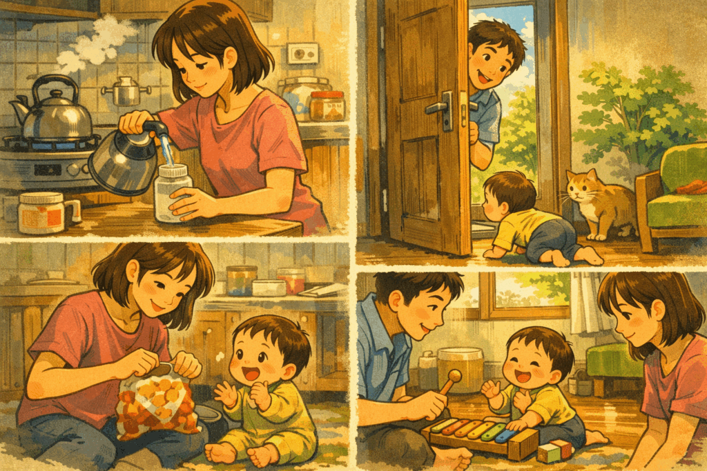 여기에 더해, 일상에서 물건마다 다르게 나는 소리들은 아기가 소리를 자신의 경험과 연결하고 의미를 이해해 가는 데 중요한 역할을 합니다. Zero to Three에서는 “일상적인 환경음과 양육자의 말소리가 영아의 언어 이해와 주의 조절 발달의 핵심 자극이 된다” 고 설명합니다.